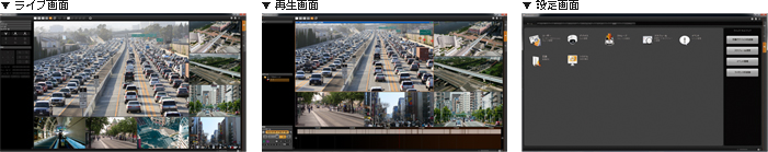 見やすく分かりやすい操作画面で、カメラ・NVR設定など各種設定が行えます。最大100分割可能なライブ画面では、用途に併せた表示パターンの作成、保存も可能です。また、再生画面では、カレンダーやモーション、イベントやサムネイル等からの検索など、お探しの場面を素早く簡単に探し出すことが可能です。