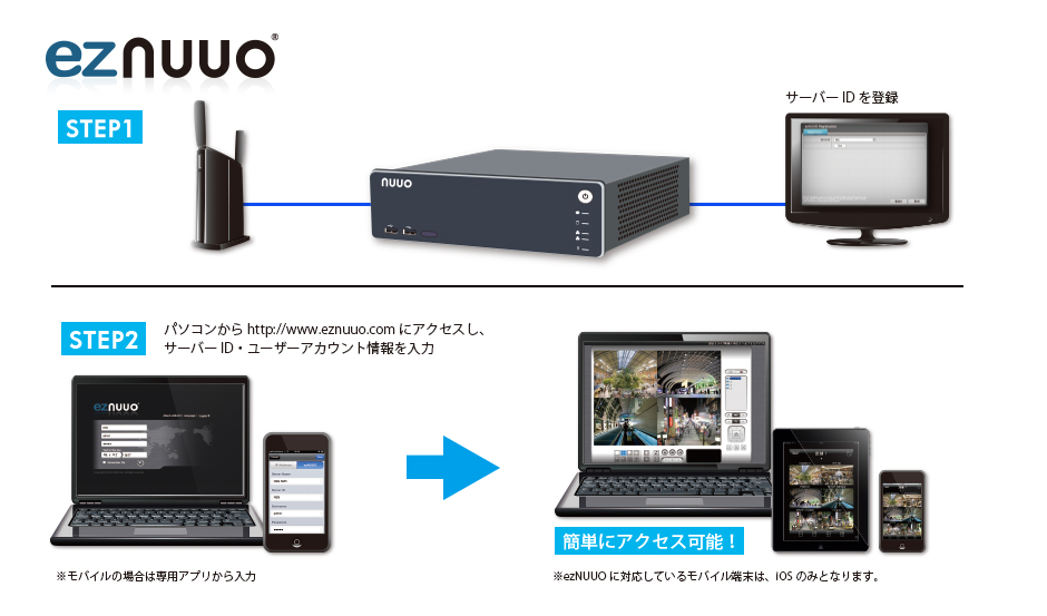 | 遠隔ライブ映像コントロール | ライブ映像、PTZ機能、リモートI/O、スナップショット、E-Map |